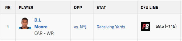 Prop Bets: Panthers WR D.J. Moore over 58.5 receiving yards, 4.5 catches