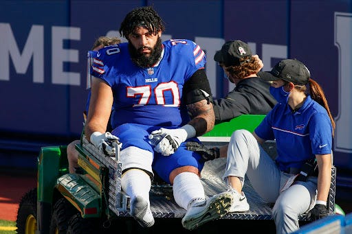 The Bills are returning all five starters from 2020. But not all are fully healthy. LT Dion Dawkins was battling COVID-19 during training camp that effectively shut him down for weeks, calling it “one of the lowest points that I've ever been."