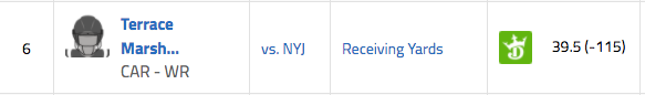 Panthers WR Terrace Marshall over 39.5 receiving yards (-115)
