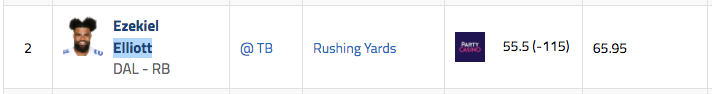 Cowboys RB Ezekial Elliott under 52.5 rushing yards (-115) (Sept 7.)