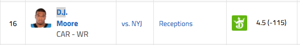 Panthers WR D.J. Moore over 4.5 catches (-115)