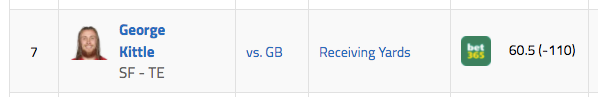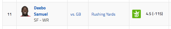 WR Deebo Samuel over 4.5 rushing yards (-115)