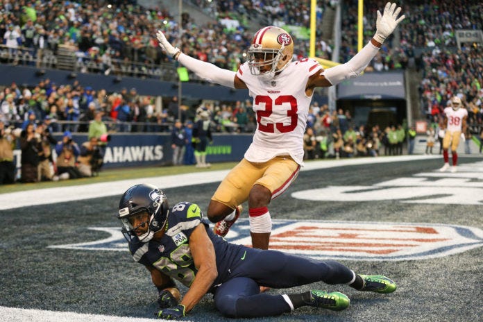 The 49ers and Seahawks both use a simplistic Cover-3 scheme. It’s where the boundary cornerback’s main objective is to play their respective 1/3 of the field with a single-high safety.